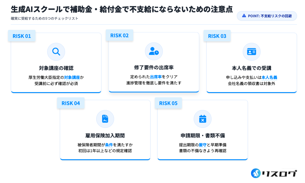 生成AIスクールで補助金・給付金で不支給にならないための注意点