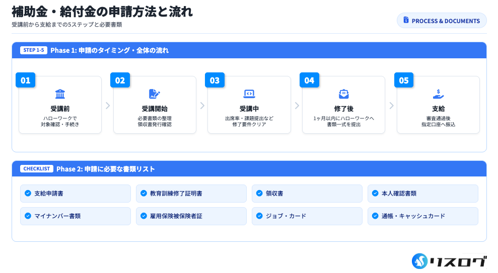 支給の際も本人確認書類が必要になるため、申込みから修了まで一貫して本人名義で管理しましょう。