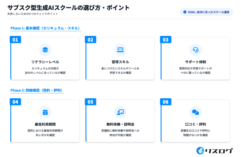 サブスク型AIスクールは料金が安い分、サポートの質に差が出やすいのが特徴です。