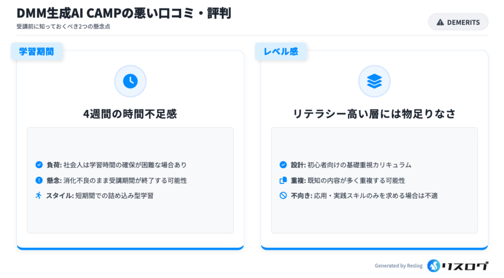 DMM生成AI CAMPの悪い口コミ・評判