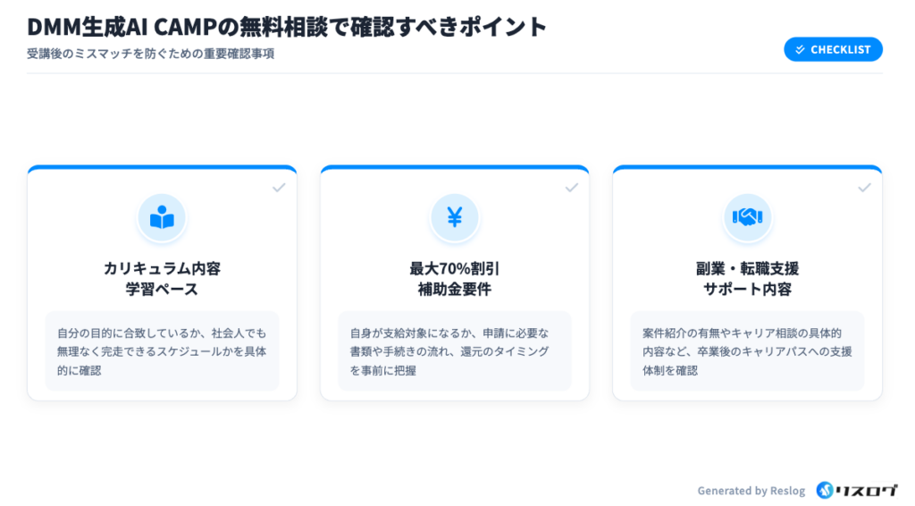 DMM生成AI CAMPの無料相談で確認すべきポイント