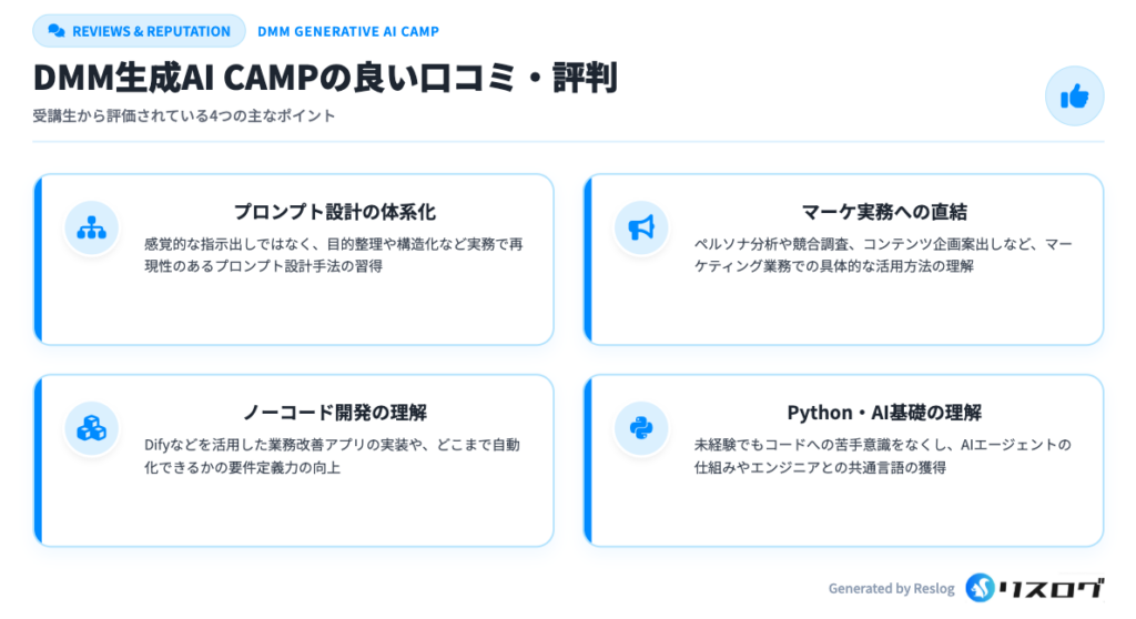 DMM生成AI CAMPの良い口コミ・評判