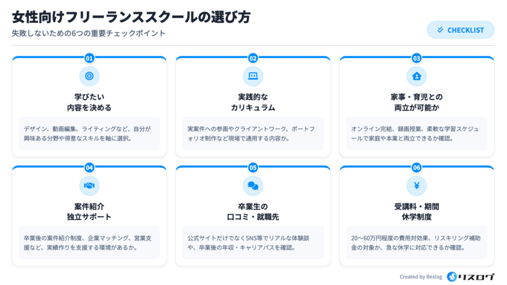 受講前にスクールに「給付金対象講座かどうか」「補助金申請のサポートがあるか」を確認しておくとスムーズです。