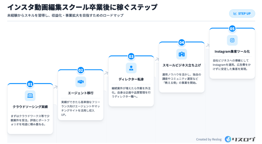インスタ動画編集スクール卒業後に稼ぐステップ・ロードマップ
