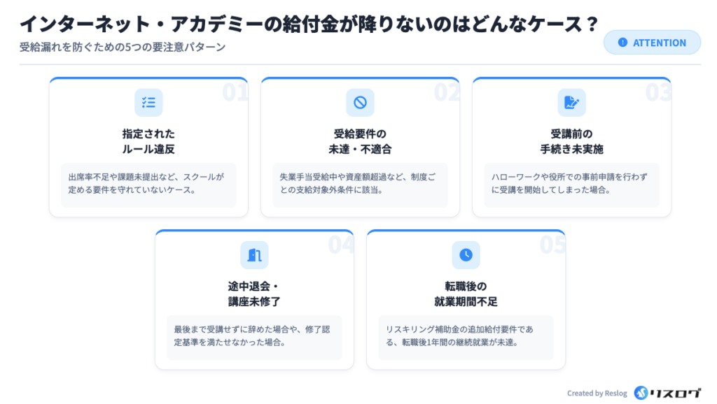 今回はインターネット・アカデミーで給付金が支給されないケースや注意点について解説していきます。