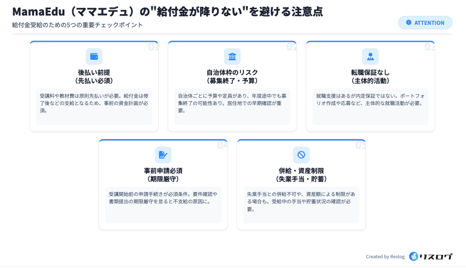 MamaEdu側のサポートを活用しつつも、最終的な申請責任は本人にあるため、制度理解とスケジュール管理を徹底することが重要です。