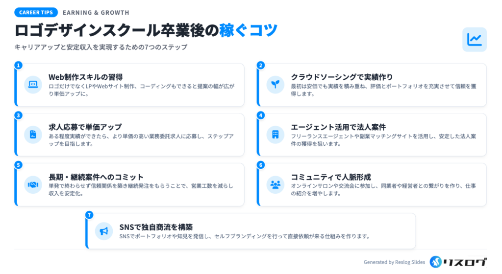 ロゴデザインスクール卒業後に稼ぐ・キャリアップするためのコツ