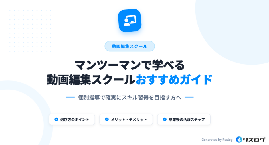 今回はマンツーマン・個別指導で学べる動画編集スクールの選び方やメリットについて解説しながら、おすすめスクールについて紹介していきます。