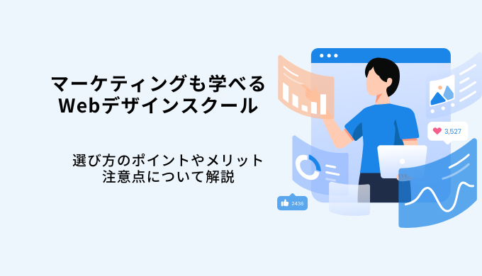 今回はマーケティングも学べるWebデザインスクールがおすすめの理由やメリット・選び方のポイントを解説しながら、おすすめスクールを紹介していきます。