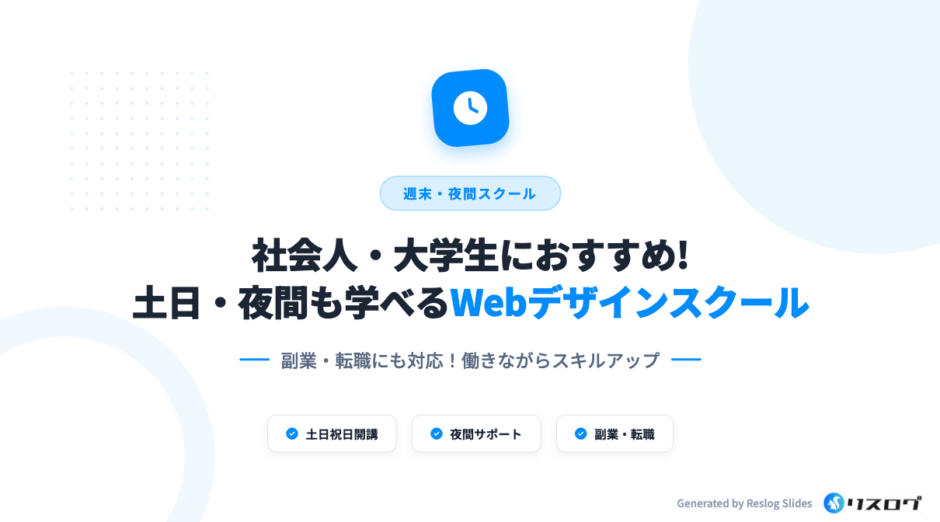 平日は本業に集中しながら、週末や仕事終わりの時間を使って副業スキルを習得できるため、キャリアの選択肢が広がります。