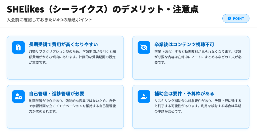 SHElikes(シーライクス)のデメリット・注意点