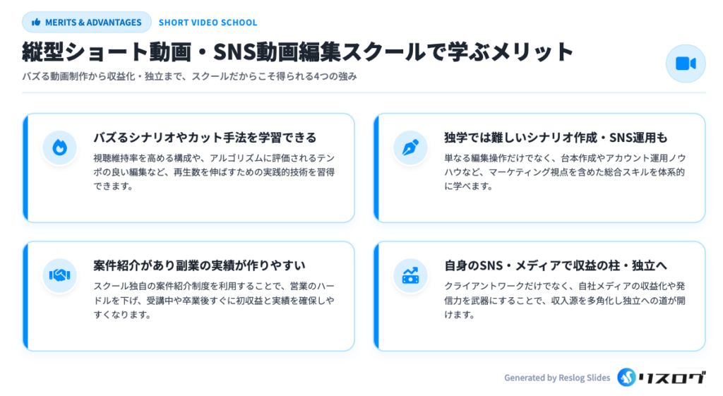 縦型ショート動画・SNS動画編集スクールで学ぶをメリット