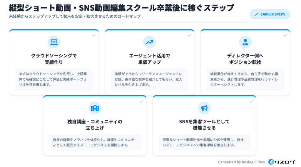 縦型ショート動画・SNS動画編集スクール卒業後に稼ぐステップ
