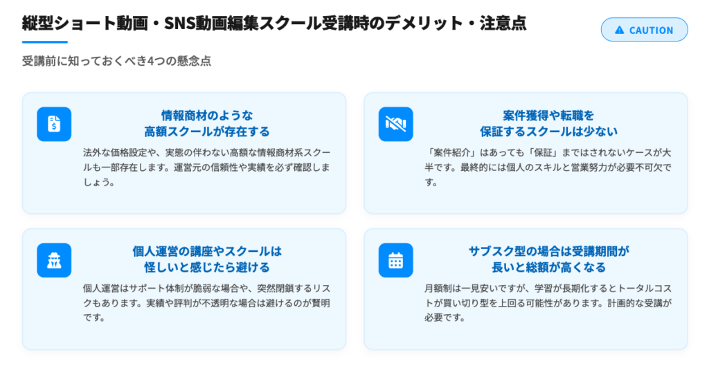縦型ショート動画・SNS動画編集スクール受講時の注意点・デメリット
