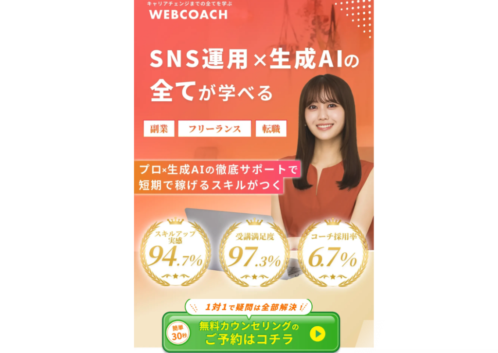WEBCOACH 案件提供5件/マンツーマン指導/SNS運用×生成AI+47のWebスキルを学習