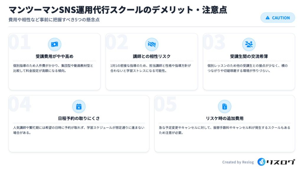 マンツーマンSNS運用代行スクールのデメリット・注意点