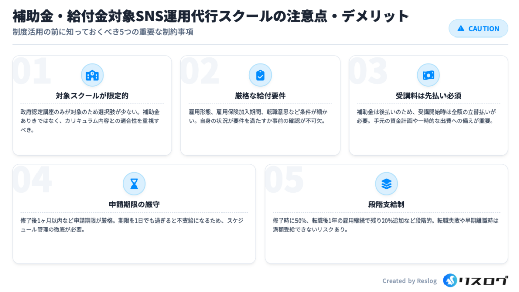 補助金・給付金対象のSNS運用代行スクールの注意点・デメリット