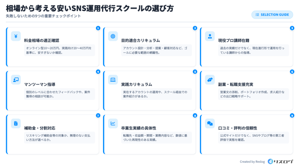 安いSNS運用代行スクールを選ぶ際、まず確認すべきなのが料金が相場から大きく外れていないかという点です。