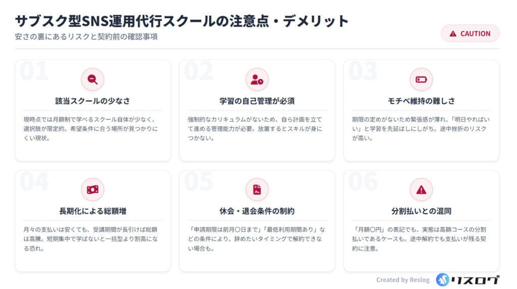 サブスク型SNS運用代行スクールの注意点・デメリット