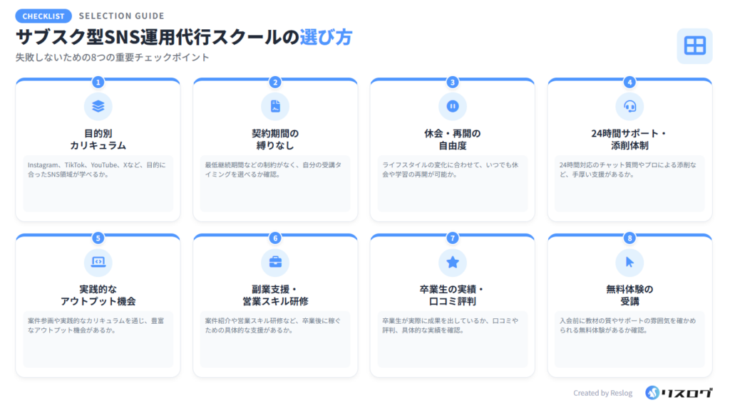 サブスク型SNS運用代行スクールの選び方