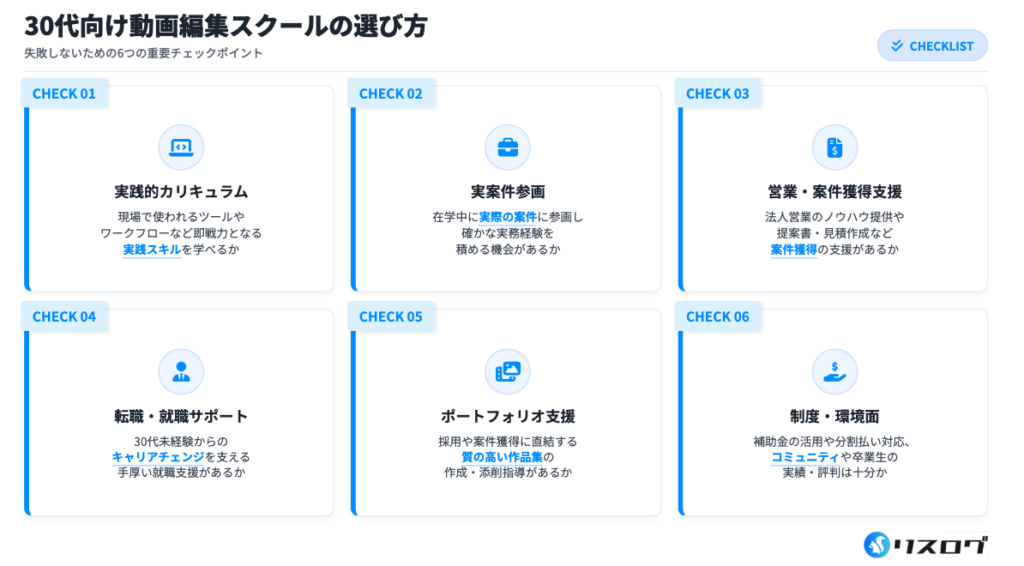 しかし動画編集スクールの選び方や注意点を解説している記事は少ないため、決めかねている人もいるかもしれません。