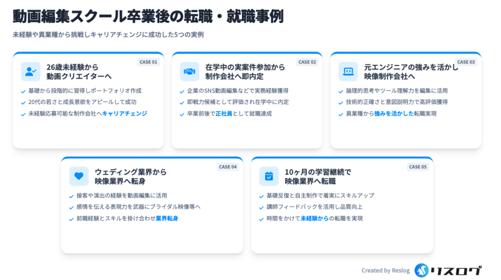 動画編集スクール卒業後の転職・就職事例