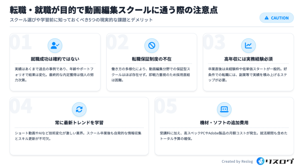 転職・就職に強い動画編集スクールに通う際の注意点・デメリット