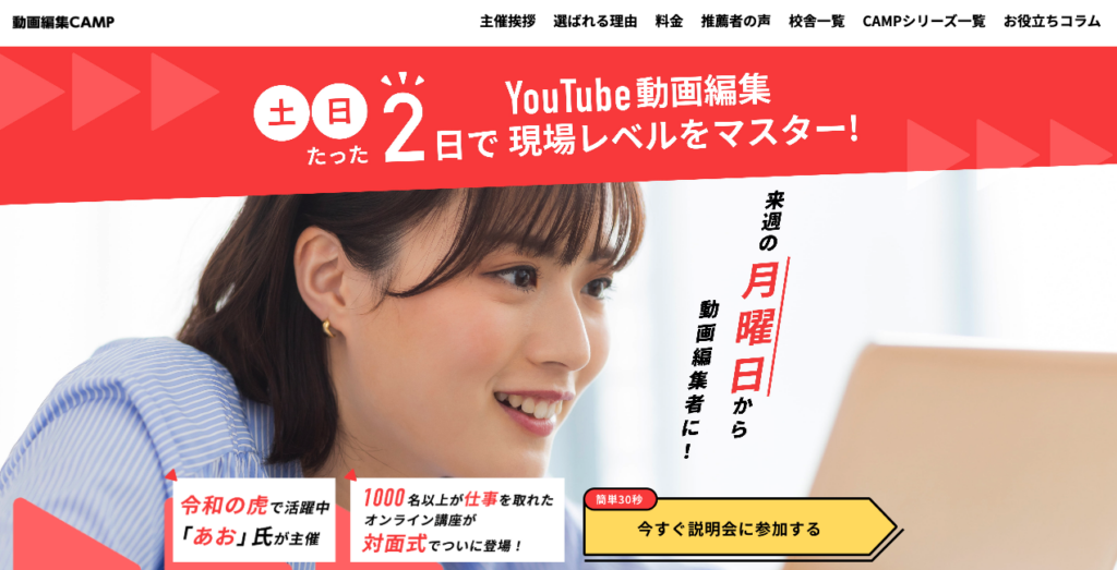 また講師が現役の動画クリエイターであるため、現場のリアルな技術や最新トレンドを学べる点もメリットです。