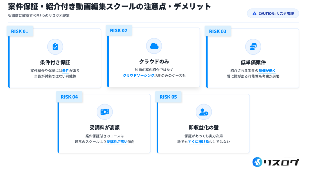 案件保証・紹介付き動画編集スクールの注意点・デメリット