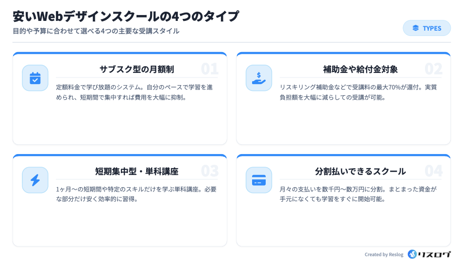 安いWebデザインスクールの4つのタイプ