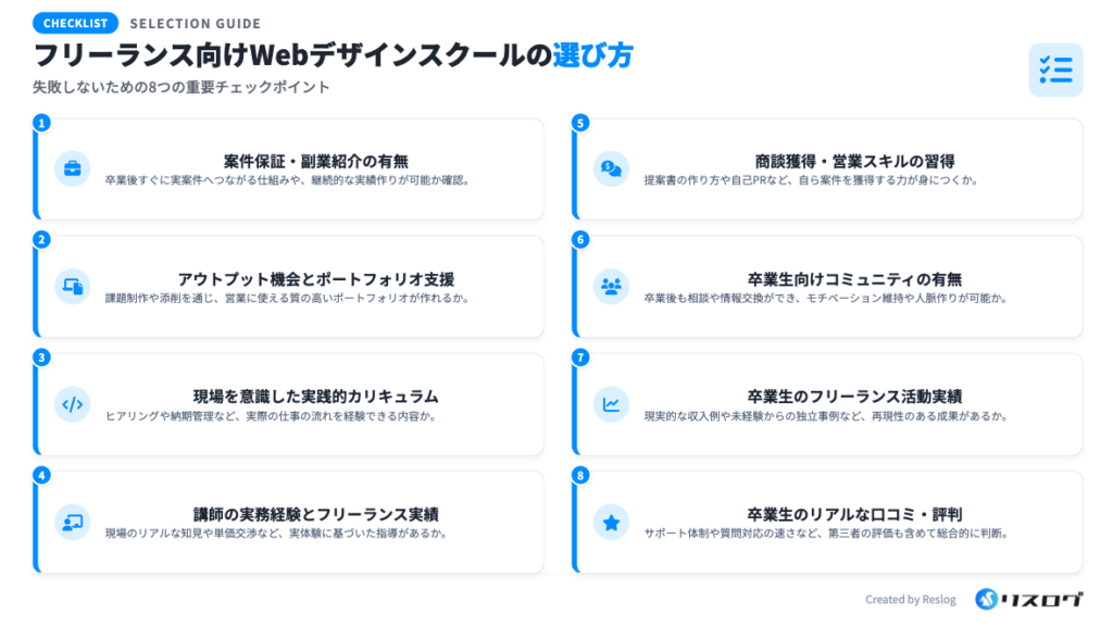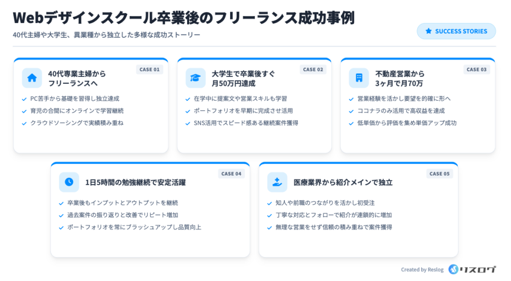 スクールはあくまでスタート地点であり、卒業後も継続的な学習と実務経験を積める人ほどフリーランスとして成功しやすくなります。