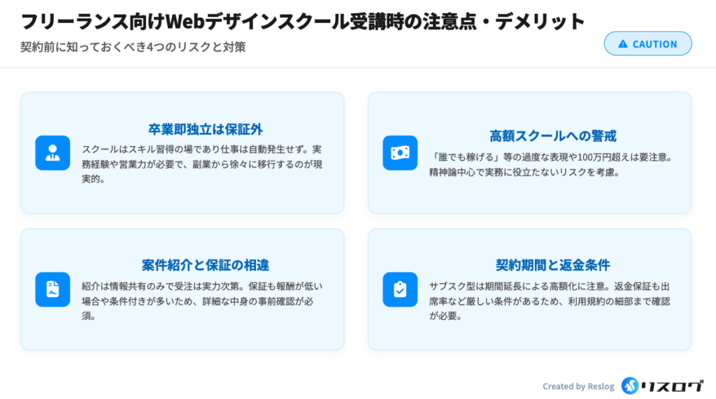 フリーランス向けWebデザインスクール受講時の注意点・デメリット
