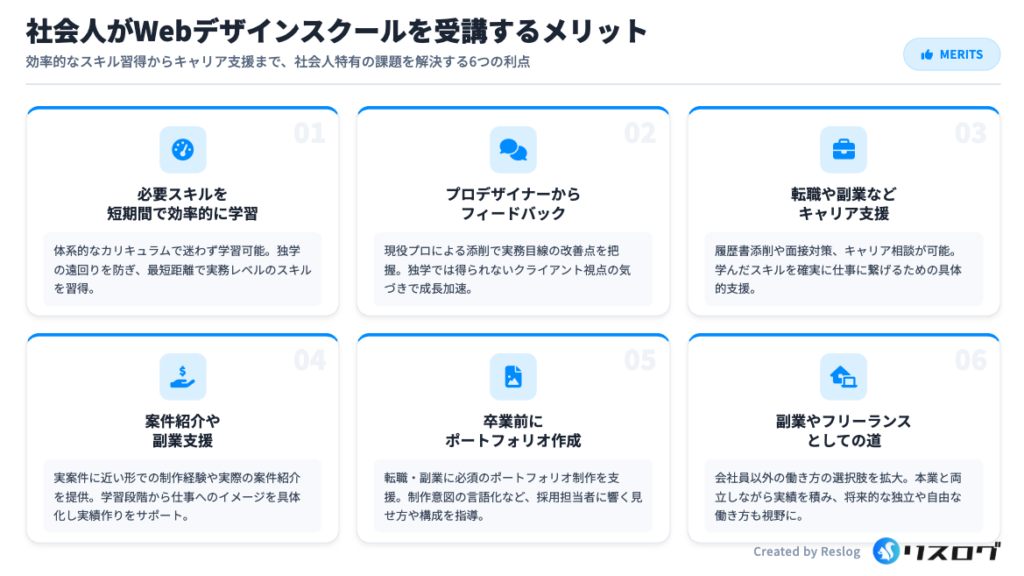 Webデザインは地道なスキル習得と実務経験が重要な分野です。価格の高さ=質の高さとは限らないため、冷静に中身を確認する姿勢が大切です。