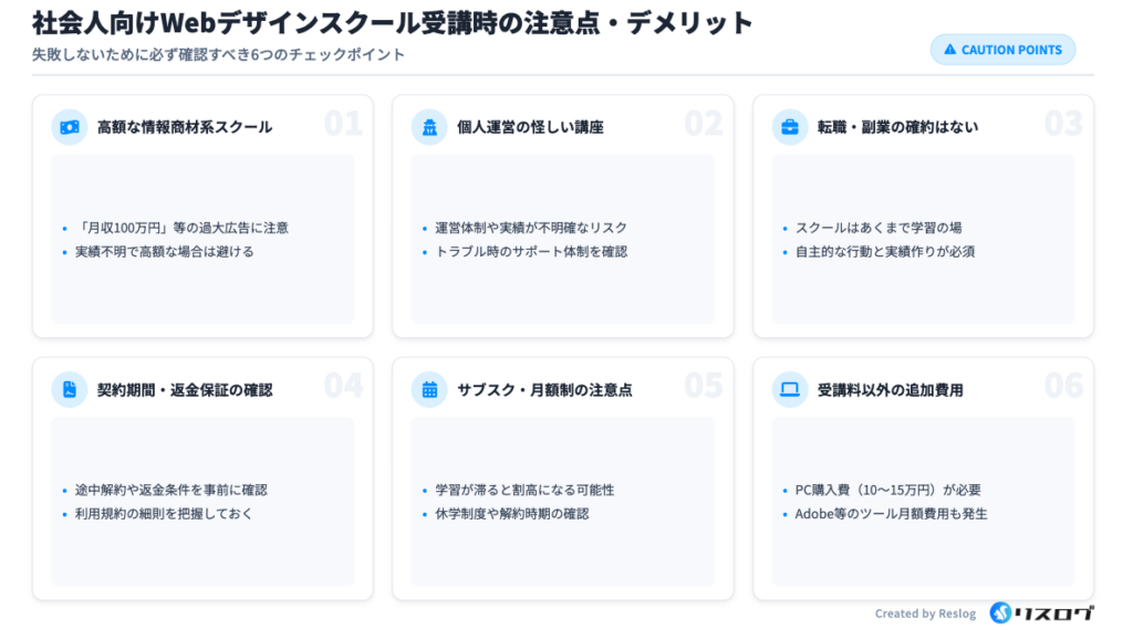 社会人向けWebデザインスクール受講時の注意点・デメリット
