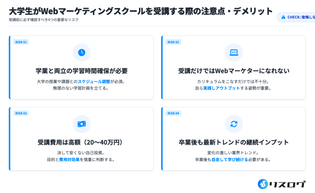 大学生がWebマーケティングスクールを受講する際の注意点・デメリット