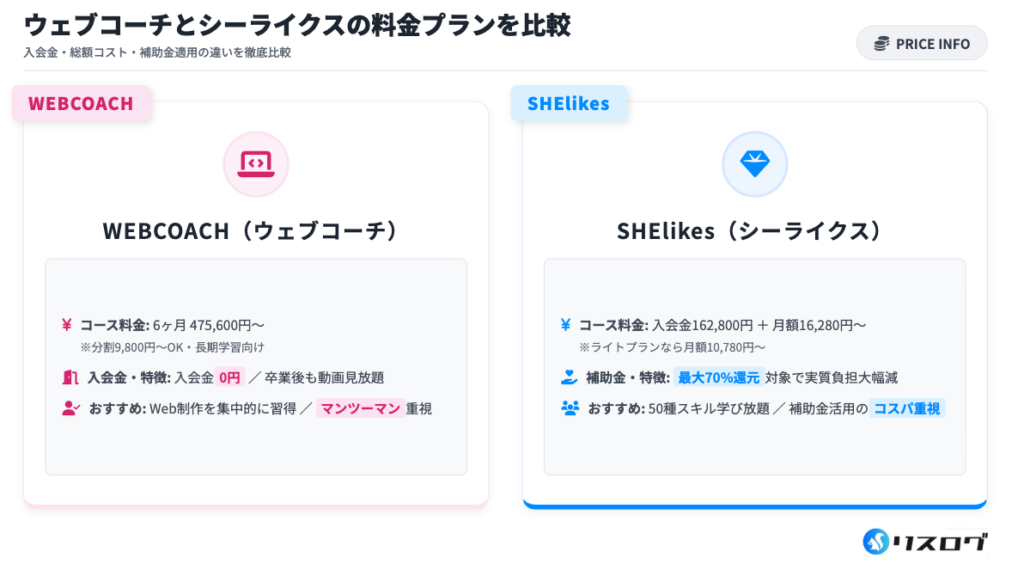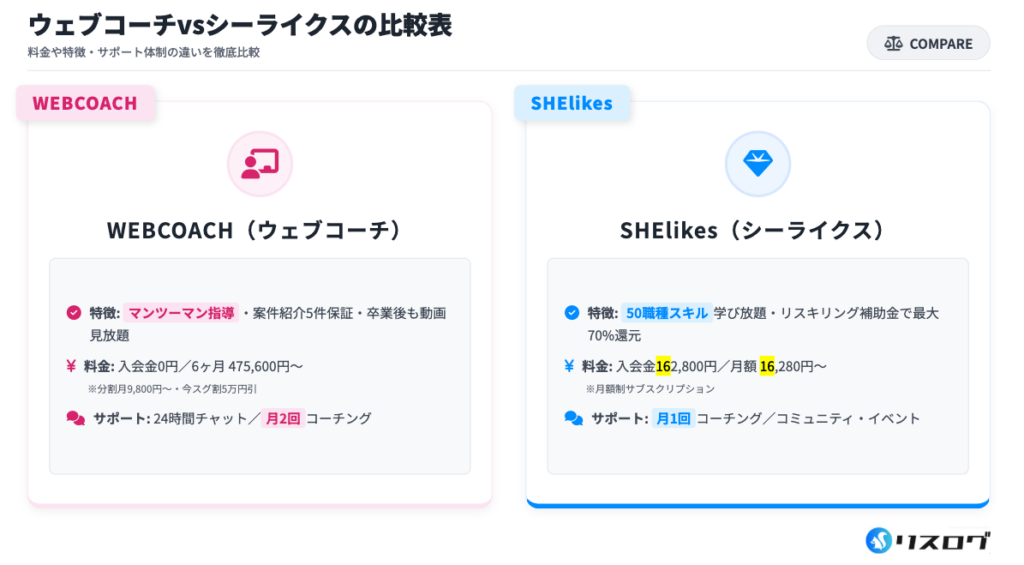 | スクール名 | WEBCOACH(ウェブコーチ) | SHElikes(シーライクス) |