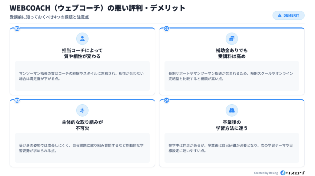 WEBCOACH(ウェブコーチ)の悪い評判や口コミからわかるデメリット