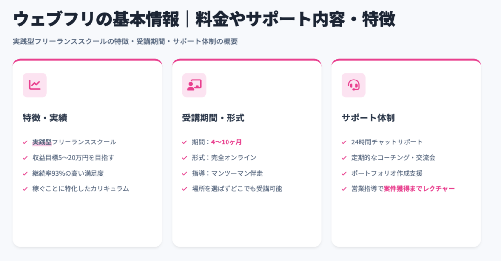 ウェブフリは「稼げるスキルを身につけ、案件獲得までサポートする」ことをゴールにしたスクールです。