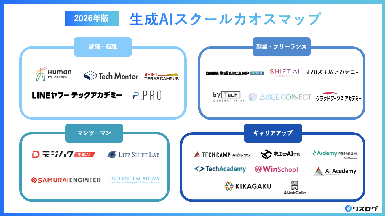 生成AI関連の契約案件単価は非AI関連の1.8倍、非IT技術者でも生成AI活用で契約件数が6.8倍になるというデータもあり、「AI活用者と非活用者で業務の質と生産性に3倍以上の差がつく」時代に対応するスキルを最短距離で身につけたい方に特に向いているスクールです。